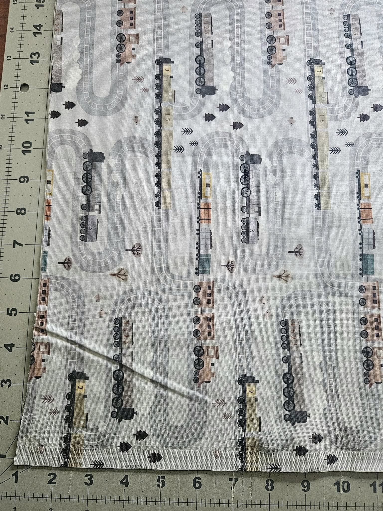 Train Fabric, On the Right Track, Dear Stella, Quilting Cotton, Gray, STELLA-DLT3302 FOG